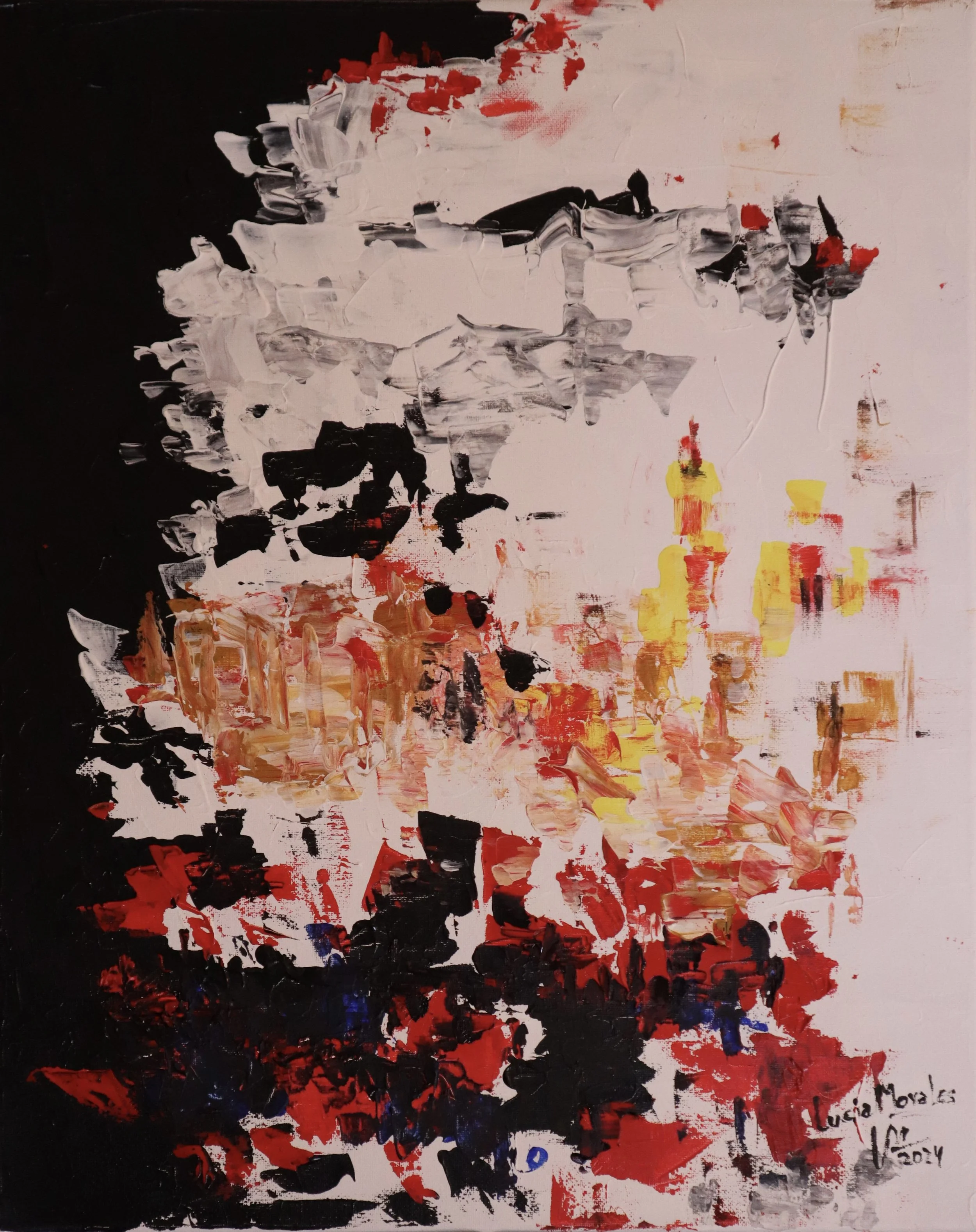 Lucía Eva Morales was born in the city of Villa María, in the province of Córdoba, Argentina. She is both an artist and a surgeon, specializing in gynecology and cytology (the study of cells). It is from this latter field that she draws her inspiration, discovering within it a universe of cells rich in shapes and colors. From this material, she gathers ideas and transforms them into art.